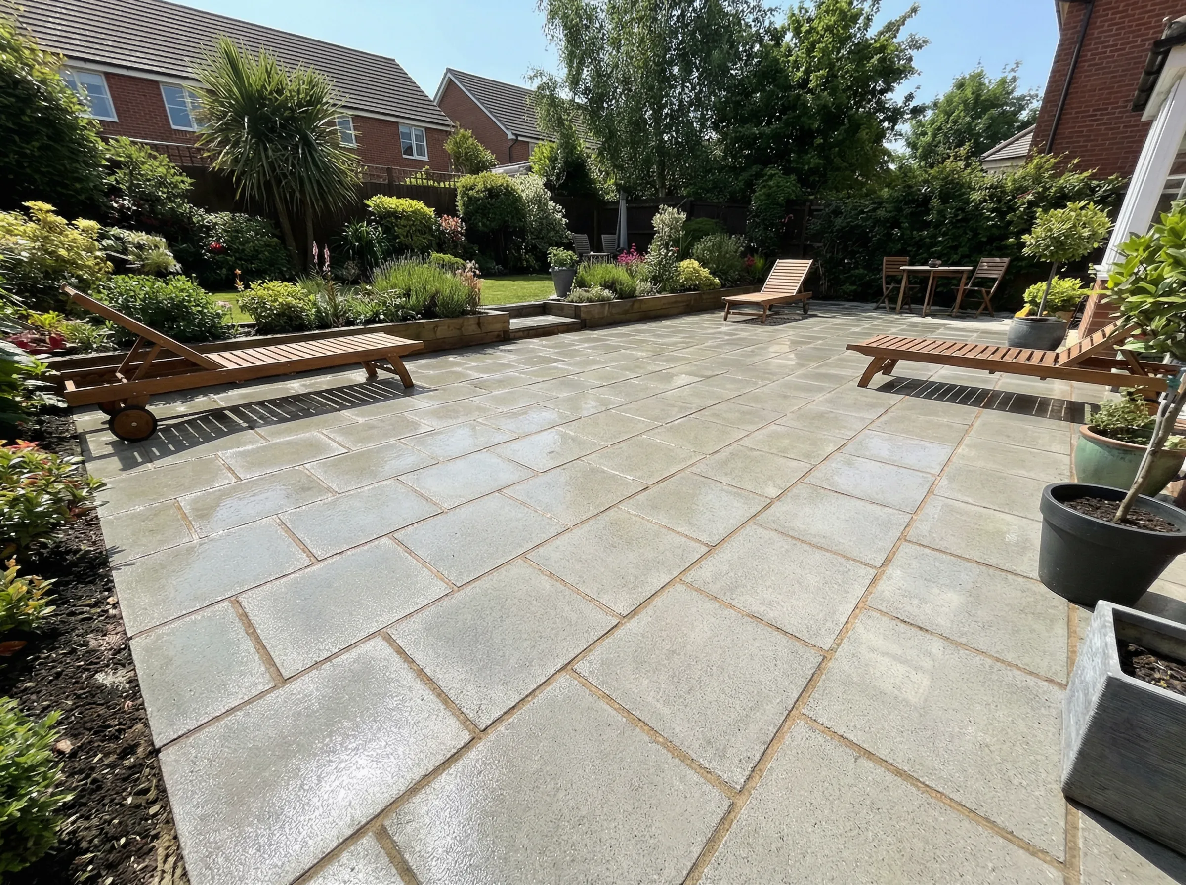 Professionelle Reinigung von Terrassen, Einfahrten, Gehwegen und allen Außenflächen mit modernster Hochdrucktechnik. Wir entfernen hartnäckige Verschmutzungen gründlich und schonend.
